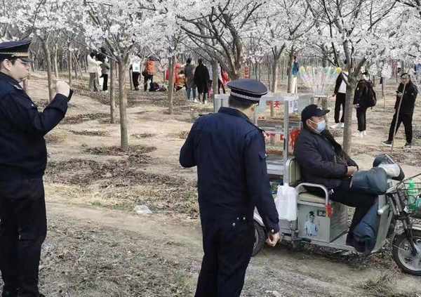虽然大多数游客注意讲文明,但少数游客摘花折柳、爬树合影、踩踏草地、乱扔垃圾、乱停乱放车辆、占道经营等不文明行为仍时有所见。在这一片热闹和喜悦的氛围里,执法队员、环卫工、志愿者的身影随处可见,他们是游走的“花朵”,用自己的无私奉献,默默构筑起太白湖新区赏花路上最美的“文明风景线”。