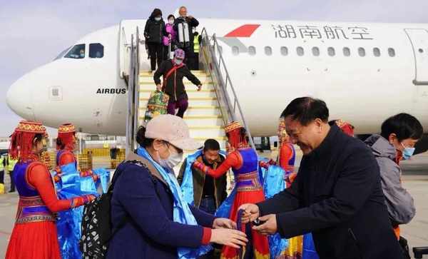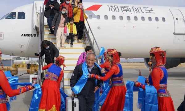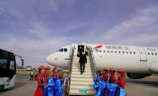 3月18日下午16时25分,长三角地区“百万人互游”首发团120人乘坐湖南航空A67127次航班抵达内蒙古首府呼和浩特。这是内蒙古自治区文化和旅游厅赴长三角地区进行文旅招商推介后迎来的首批长三角地区“百万人互游”首发团,来自苏州、上海、南京、无锡等长三角地区主要客源地的游客将在辽阔壮美的内蒙古换季打卡,畅谈文旅人的“春天”。