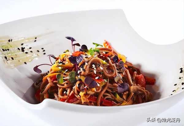 4、将鳝鱼丝与脆笋丝放入碗中,调入辣鲜露,蒜汁,红美人椒丝,大葱丝,藤椒油,搅拌均匀即可。