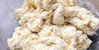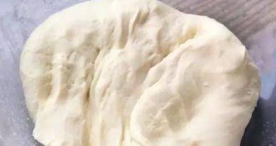 2.现在开始来和面,这个和面方式和做包子馒头和面不一样,不是直接用手使劲揉,而且要用手背按压的方式把面团整理成型。刚开始的时候可能面粉比较粘手,按压一会可以盖上保鲜膜松弛10分钟,再来继续做。这样重复2次左右,面团就会比较光滑,揉好的面团非常的柔软。揉好的面团需要醒面3个小时以上再来炸油条,所以现在找一个容器或者一个保鲜袋,在面团表面刷一层食用油,防止粘连,然后把面团装进去,放入冰箱保存。这个和面可以提前一晚制作,这样第二天一早起来几分钟就有美味的油条吃了。