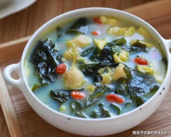 步骤9:加入一些枸杞子,撒上切碎的葱,煮约。一分钟,关火,取出锅。这道裙带菜蛤蜊鸡蛋汤就做好了,汤很鲜美。裙带菜蛤蜊鸡蛋汤是一道非常美味的补钙汤品。贻贝肉质鲜嫩,汤汁鲜美。裙带菜是高钙成分之一。可与扇贝、鸡蛋同煮,改善人体营养,帮助孩子长高。可惜不知道怎么吃。