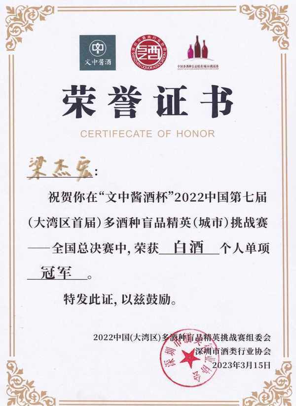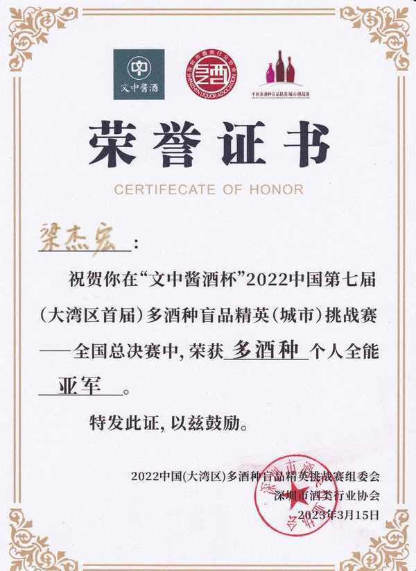 3月15日,由广东省酒类行业协会技术指导,深圳市酒类行业协会主办的2022中国(大湾区)多酒种盲品精英挑战赛全国总决赛在深圳举行。