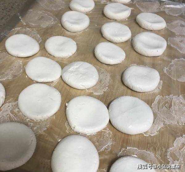 第三步:和面皮一起揉面,揉成长条,再切成小块,和面皮一起揉成饼状。