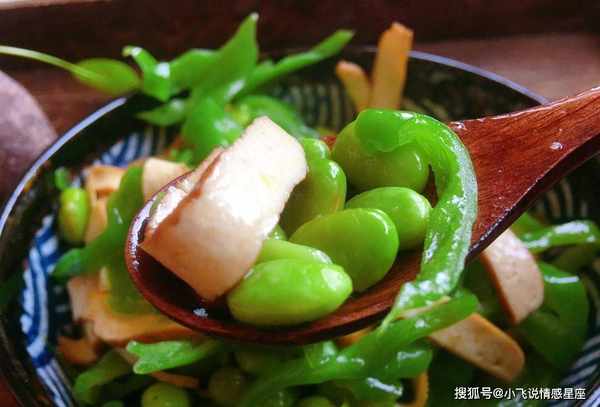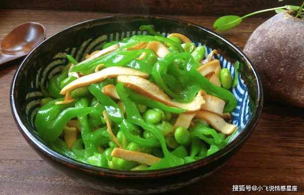 烹饪技巧:青椒炒毛豆是一道美味可口的菜肴。毛豆是一种新鲜的豆类。毛豆应该清洗干净。如果毛豆想要更绿的颜色,应该先用微盐水焯一下,再用冷水泡一下。有香味的干条也应该漂白。你需要把锅烧热,先把切好的大蒜炒熟。不要忘记用中火烤。倒入毛豆和香干叶,翻炒至入味。加入少许盐、糖和鸡精,最后加入生抽和蚝油,翻炒入味。