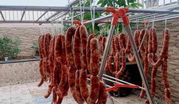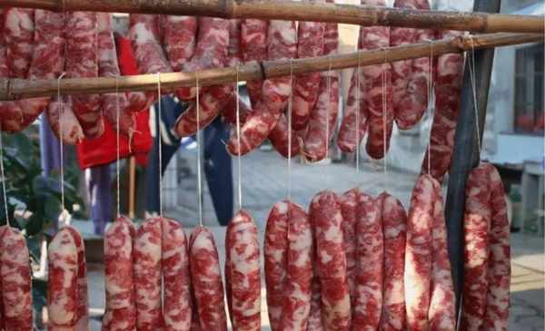 第四:掌握腊肠馅的时间和技巧腊肠馅通常在十二月完成。腊月的气温应该很低。其实11月份就可以包馅了,温度要保持在10度以下。如果温度太高,香肠会变质。不要把香肠装得太满,尽量不要撕破它们。把所有的香肠都塞进去后,别忘了在盒子上戳个洞让香肠跑出来。放在通风处,在太阳底下晒几天,最后放入冰箱,这样香肠一年都不会坏。