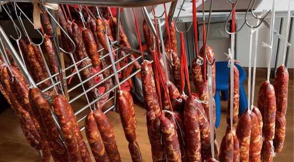 腊肠馅的猪肉选择很重要。五花肉和前腿肉肥瘦兼备。肉很肥,味道不好。应选择脂肪少、瘦肉少的猪肉。腿肉和牛肉,这种肉很嫩,吃起来不腻。