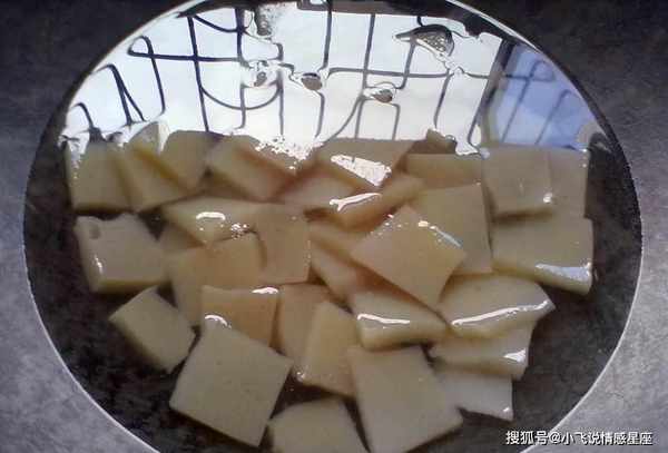 2:浸泡魔芋200克,将魔芋全部切成几块,锅中烧一锅热水,最好将魔芋煮沸,去除碱性成分,捞出过凉水。