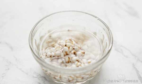 1:准备冬瓜、魔芋和薏米,薏米用清水反复洗净,将薏米放入碗中,加冷水浸泡一夜(至少一两个小时)