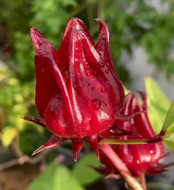 洛神花也叫玫瑰茄、红桃K、洛神果,国内常见于两广和福建,老家在非洲西部。