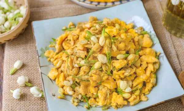 家常一些,则是和鸡蛋组cp,做成木槿花炒蛋