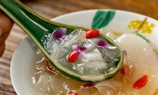 花瓣受热后,朝里收缩,口感瓷实而软糯,多了一重绵密的花胶,层次感很丰富。