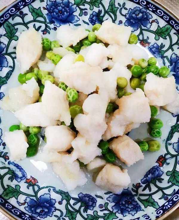 2.锅内加水。水开后,将龙利鱼和青豆放入锅中焯水,然后捞出晾凉。龙利鱼用胡椒和盐调味。