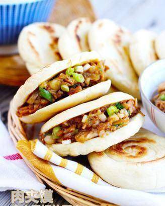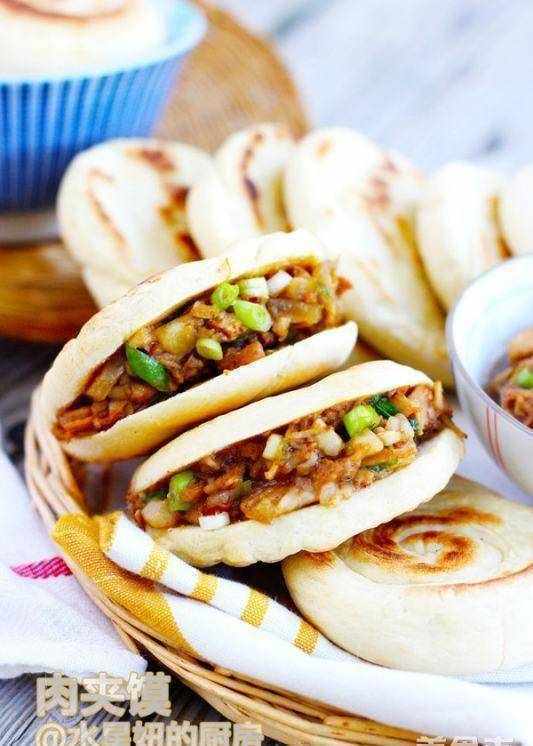 肉夹馍是中国古语“墨中肉”的简称,中国陕西省汉族特色食品之一。