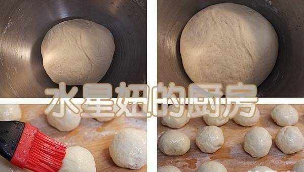 将泡好的面分成50-55g的小剂子,滚圆,抹油松弛15分钟