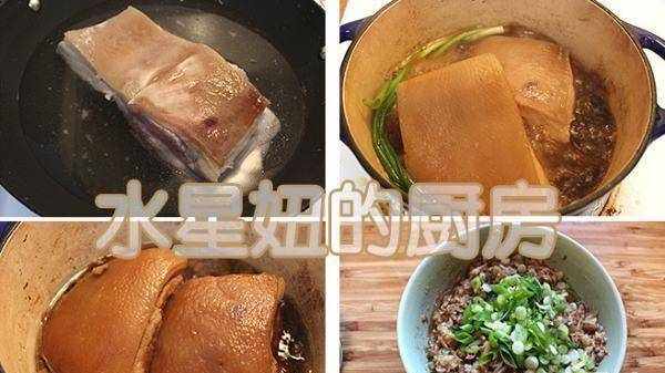 趁热把肉剁碎,淋上肉汁和葱花待用