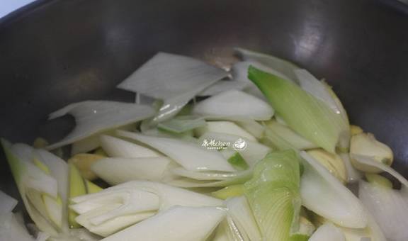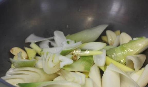 3大葱洗净拍一下,切段,炒锅烧热油,爆香姜片、蒜和大葱