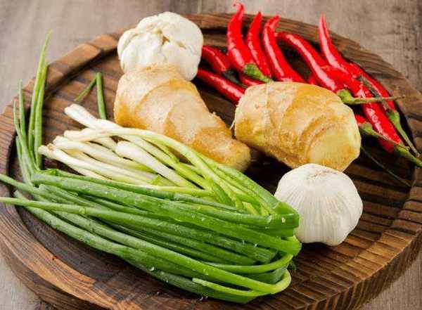 准备步骤5:大蒜去皮切碎,锅中加入少许油,放入蒜片和姜片,加入少许鸡精炒至顺滑。
