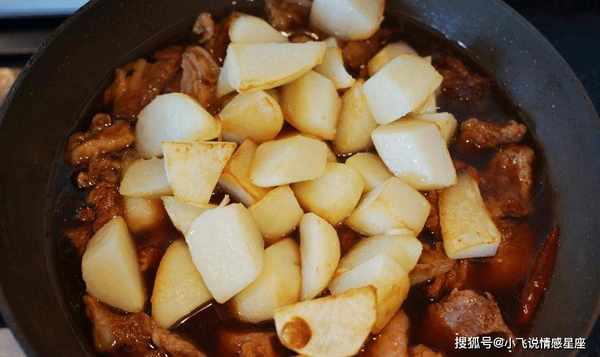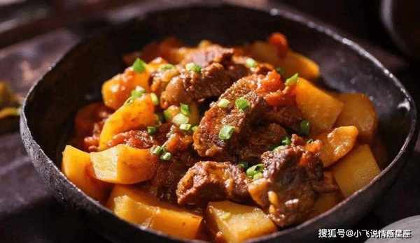 第六步:加入牛肉块,加入料酒和水,将牛肉煮至沸腾,开火慢炖,让牛肉软烂有嚼劲,直到牛肉可以用筷子扎破。第七步:中间放入土豆慢炖,加入少许盐、鸡汤、鲜味。等到土豆和牛肉都煮熟了,还可以加点胡萝卜来搭配颜色,这样吃起来非常好吃。