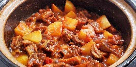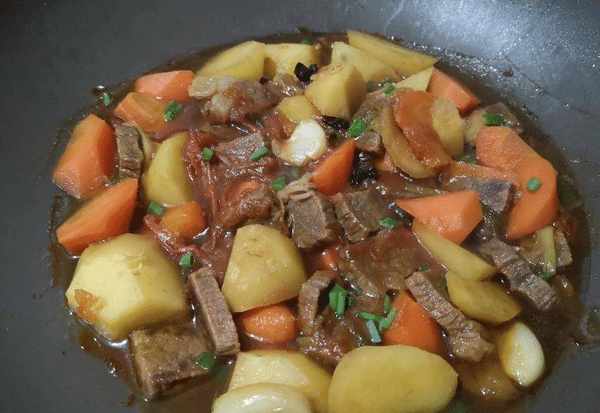土豆炖牛肉是一道美味的家常菜。牛肉肉质有嚼劲,营养丰富。与胡萝卜、土豆同煮,可增进食欲,滋补养生,调理体质,有助头部生长。有很多好处。