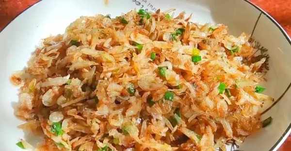 2、起锅下油。葱白碎先下锅炒香,接着下入虾皮翻炒微黄后,加入少许胡椒粉,一勺酱油、半勺蚝油,最后再下入适量葱花,翻炒均匀后就可以出锅啦。