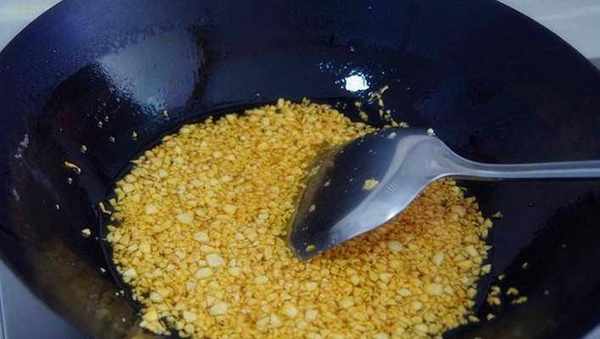 5、炒锅放入两碗清油,烧至5成热,放入红头葱和大葱圈,中小火,慢慢把葱里的香味物质炸出来,炸到葱都发黄发干,用小网勺捞出所有干葱;