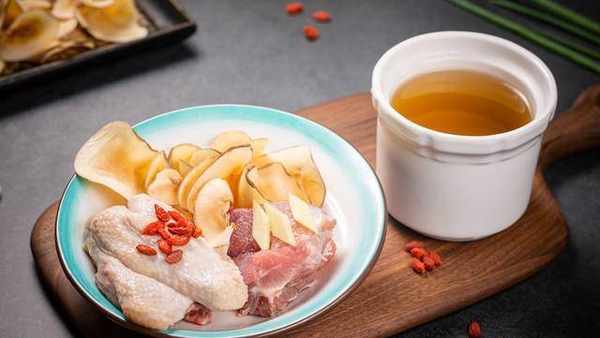 7.把处理过的枇杷果放入骨汤中,煮至开锅后即可熄火,进入少量盐调味。