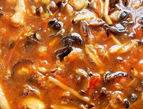 加入适量的清水大火煮开加少许糖和盐、酱油、胡椒粉。煮上5-8分钟后放入鸡蛋淋入水淀粉勾芡,最后再淋入香油。搅拌均匀关火成为打卤汁备用。