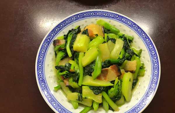 【材料】:菜苔1把,咸肉1小块,盐适量,油适量