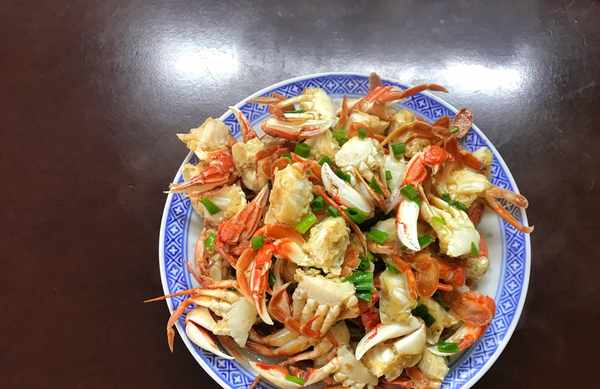 2、锅中倒入适量油,放入葱姜煸出香味后放入沥干水分的蟹块,翻炒至变色加入料酒炒匀后加入适量盐调味加入水大火煮5分钟撒上葱花即可关火。