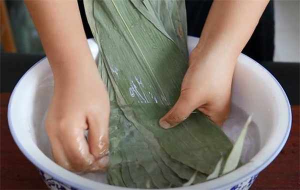 2.我们准备一盆清水来清洗一下,其实相对于鲜粽叶而言,干粽叶是比较容易能清洗干净的。