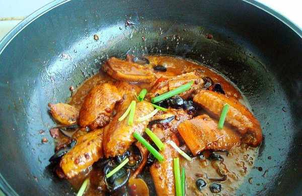 10、最后大火收汁,这样气质汤汁都被鸡翅吸收了,好吃,也好看,鸡翅油光闪亮的特别有卖相。撒上香葱段即可出锅,鸡翅香浓入味又肉美好吃,特别的开胃,看着就是食欲大增。
