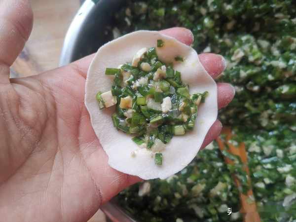 韭菜雞蛋餃子,新鮮雞蛋包出來味道更鮮美。但是值得注意的就是雞蛋不要一起打入盆裏,分次打入,例如:把餡料分成3份,從第一份打一個雞蛋拌勻,包完。然後在進行第二份包制,如此類推,最後包完也不會出水。