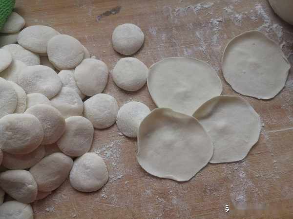第五步:麵團揉勻揪成小劑子,按扁擀成薄一些的餃子皮。