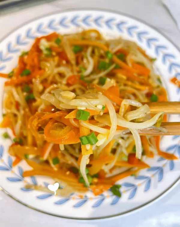 每年秋冬季节我都有很多社交活动。平时大吃大喝,加之作息不规律,很容易导致肥胖,体重悄悄增加,鼓鼓囊囊的肚子看起来也太丑了。今天推荐一道我家常吃的素菜:蒜蓉胡萝卜炒豆芽,不放一块肉。两者一起烤着吃。清爽可口,低脂健康。试一试。在冬天,你吃什么都可以长肉。给家人多吃这道菜。它脂肪含量低,卡路里含量低。好吃又不怕发胖。