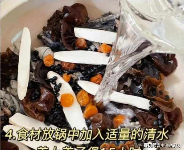 配料明细:买桂圆干20克左右,山药干40克左右,黑蘑菇30克,优质黑豆50克左右(也可以选芸豆或红豆,都可以用)。煲汤)买优质枸杞子20克,乌骨鸡半只(或者选老鸡,秋天喂养身体的首选,用来煲鸡汤很不错,但是有必要取扔),冷水少许,温水适量,姜一大块,料酒少许,葱几根,盐一滴,油少许,胡椒粉一滴等调料.