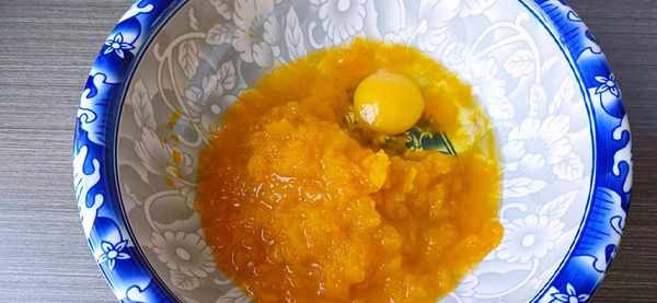 4,往300克南瓜泥中打入一颗鸡蛋,搅拌均匀。