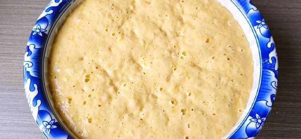 5,往南瓜泥中加入300克面粉,3克酵母,30克白糖,搅拌成粘稠的糊状,盖上盖子醒发。