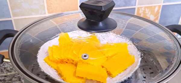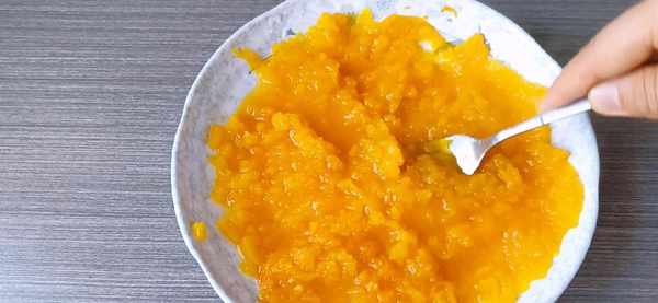 3,把蒸熟的南瓜捣成泥,放至温热。