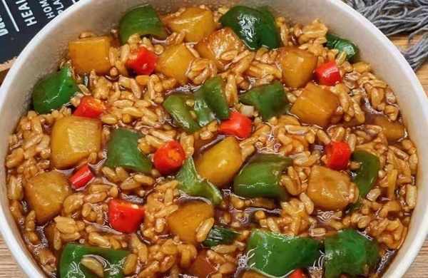 青椒、土豆、大米、小米椒、葱花、蒜末、淀粉、食用油、蚝油、生抽、老抽、砂糖、食盐、清水