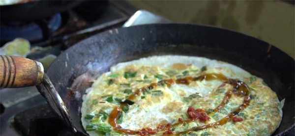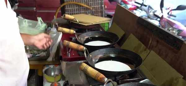 广东小伙在街边开小吃店卖鸡蛋饼,一天用掉200斤大米,巴掌大只卖3.5元。