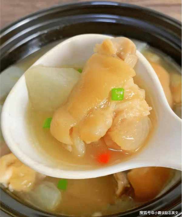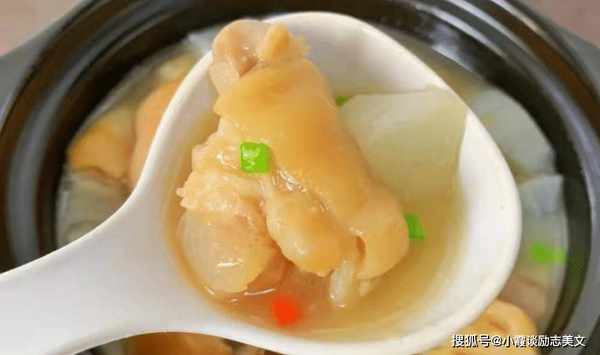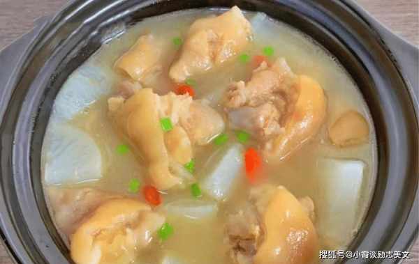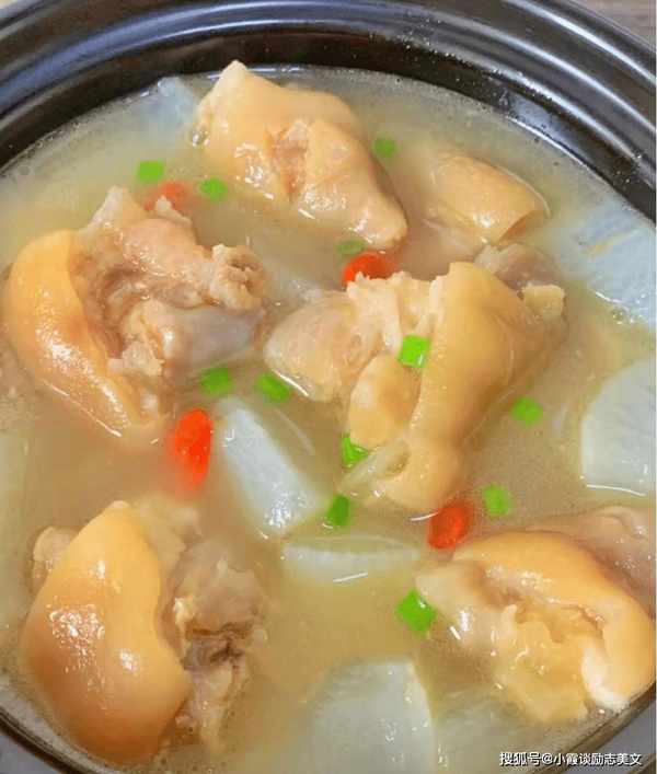 烹饪技巧:白萝卜猪蹄汤是冬季进补汤品之一。炖的汤很好吃,猪蹄很有弹性。汤汁清新爽口。它特别有营养和令人满意。还能润肤调色,皮肤很有弹性,女性朋友不要错过喝这汤。