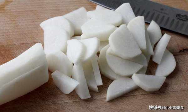 第五步:将香料和壳取出,再次加入适量清水,煮熟后加入白萝卜块,加入一茶匙盐。