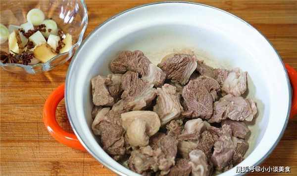 第二步:将一块羊肉切成几块。将羊放入冷水锅中,加入足量的水,加入适量料酒,用大火将羊煮熟,去除表面的血沫,然后再次过滤。漂烫后的羊不会有羊腥味。第三步:把碗拿开一会儿,加入一些大蒜和姜片,八角2颗,花椒一小把,加几大碗水,把碗放在大火上煮45分钟。