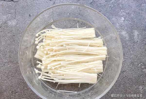 第一步烹调:将买来的金针菇切去根部,用手撕成几片,然后用流水冲洗干净。根很脏。记得多洗几次,也可以泡在盐水里。发挥消灭细菌和有害物质的作用。
