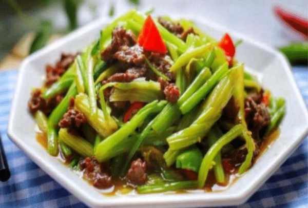 优点:芹菜烤牛肉是一顿美餐。芹菜热量低,能吸收牛肉脂肪。一起吃的时候,牛肉丝很嫩,营养也很额外。