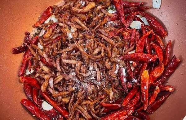 火不要开太大,以免花椒炒焦或干辣椒炒黑。