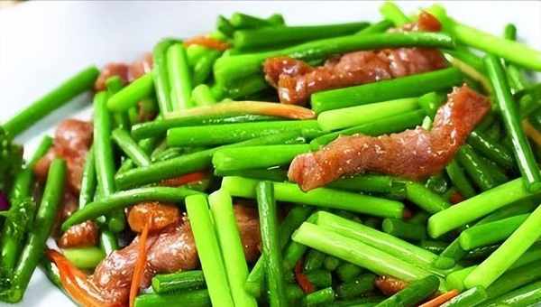 这道菜品再熟悉不过,但是蒜苔还有天然抗生素的功效,在炎热的夏季,细菌较多,蒜苔有杀菌的作用,在夏季正是蒜苔上市的时间,买来炒肉丝,美味可口,蒜苔的口感清脆,没有异味,搭配肉丝翠绿中一点金黄,看着就有食欲。