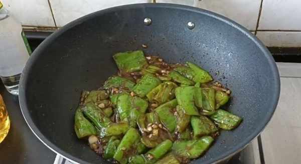 嫂子做的虎皮青椒非常下饭,而且操作特别简单。先是把青椒洗干净压扁,然后切成大小均匀的段,先在锅里少倒点油,一边炒一边将青椒按压,等到青椒已经软下来了,再将蒜末倒进去炒出香味,并且和青椒混合均匀,接着再把提前调好的料汁倒下去,翻炒至收汁就可以出锅了。
