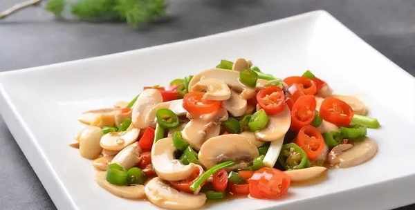 口蘑白脆、辣椒辛红,二者各自可以成就无数道美食;两者结合那就是独属于湘味的珍馐佳肴。