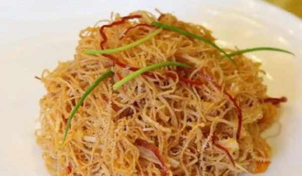 发丝牛百叶是湖南宴席的最高规格,第二届全国厨师大赛的银奖作品。其刀工、火候、口感,代表了湘菜的最高水平。六分百叶、三分冬笋、一分辣椒丝;雪白丛中一点红丝,冬笋的韧劲支撑起细如发丝的百叶,在步履丛中微微轻颤,动感十足。